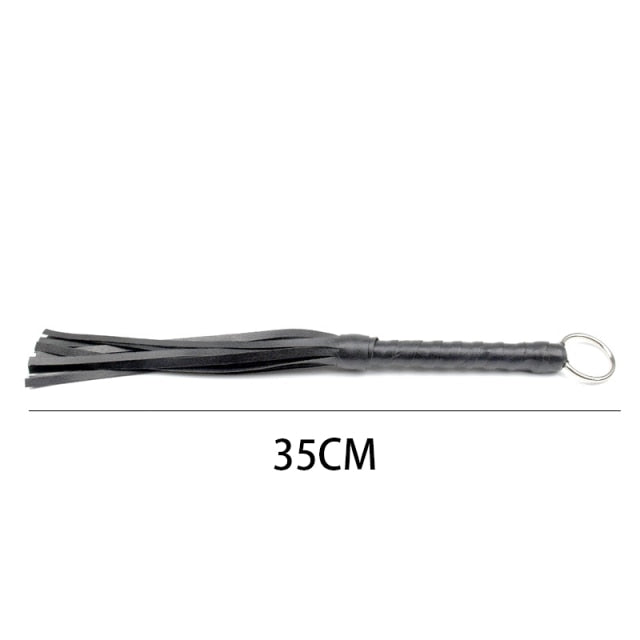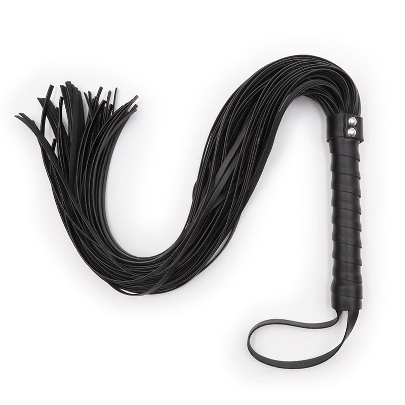 Chicote com fitas de cabedal.