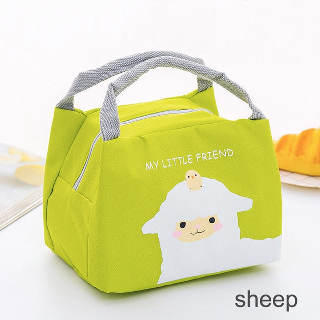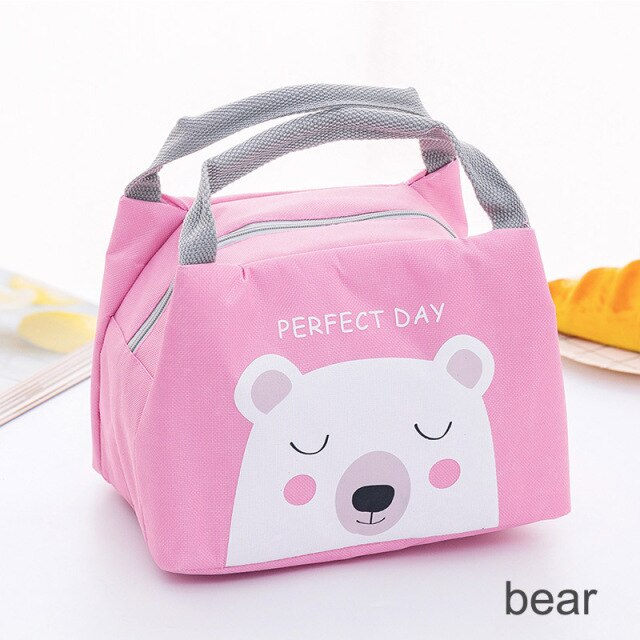 Lancheira térmica para criança com várias ilustrações disponíveis.