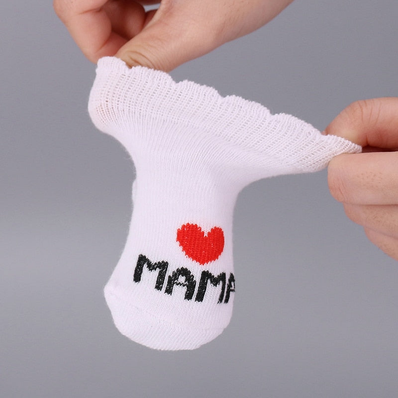 Meias com ilustração mamã e papá ajustável até aos 4 meses.