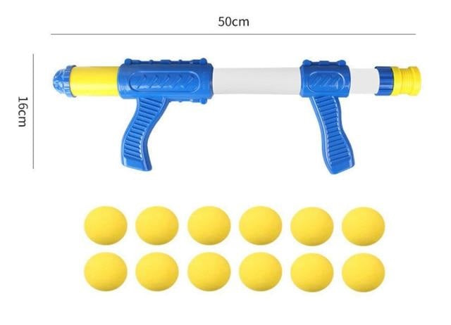 A pistola inclui 12 bolas para disparo reutilizáveis com duração de 10 anos.