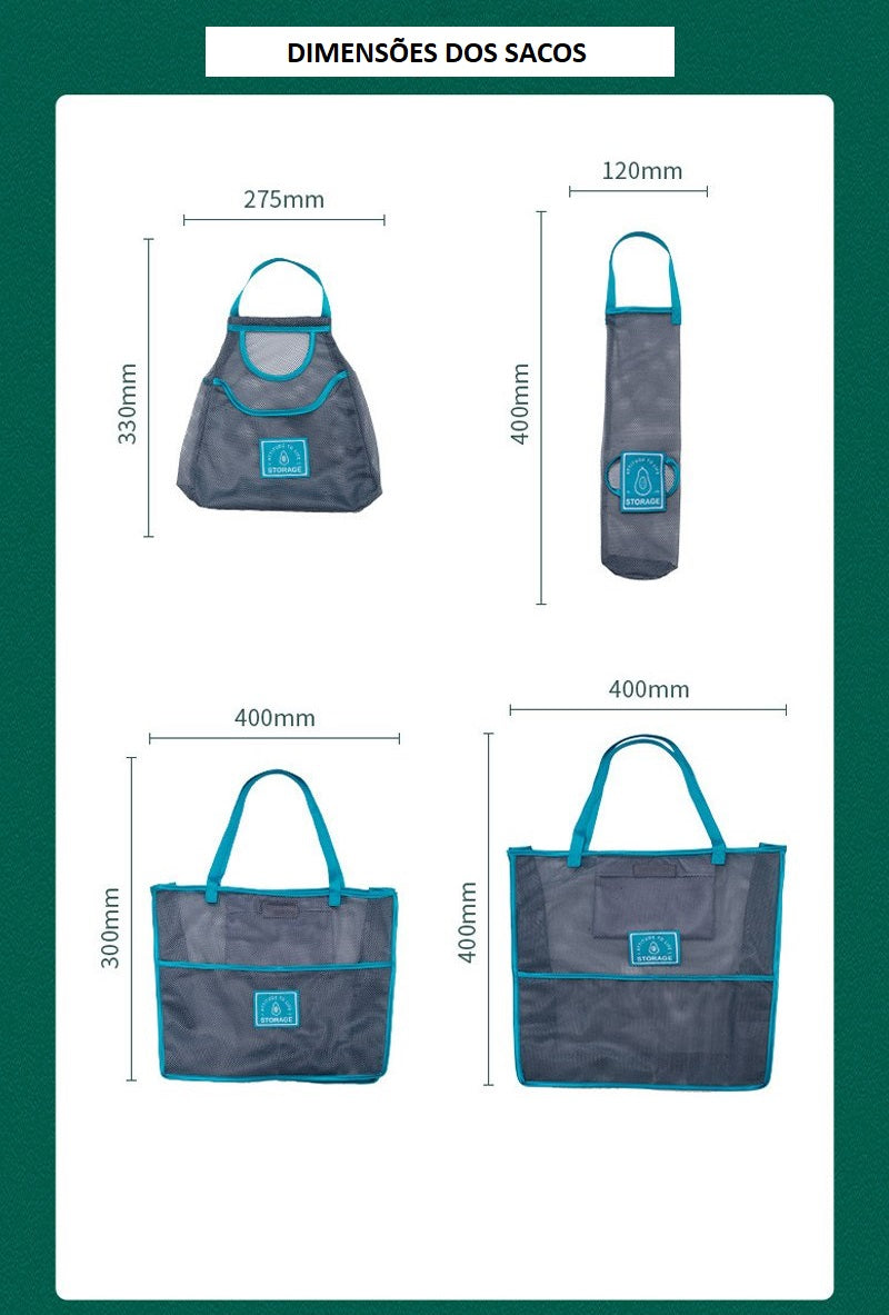 Sacos de rede feitos em 100% polyester, ideal para transpprtar ou armazenar os seus legumes no frigorifico.